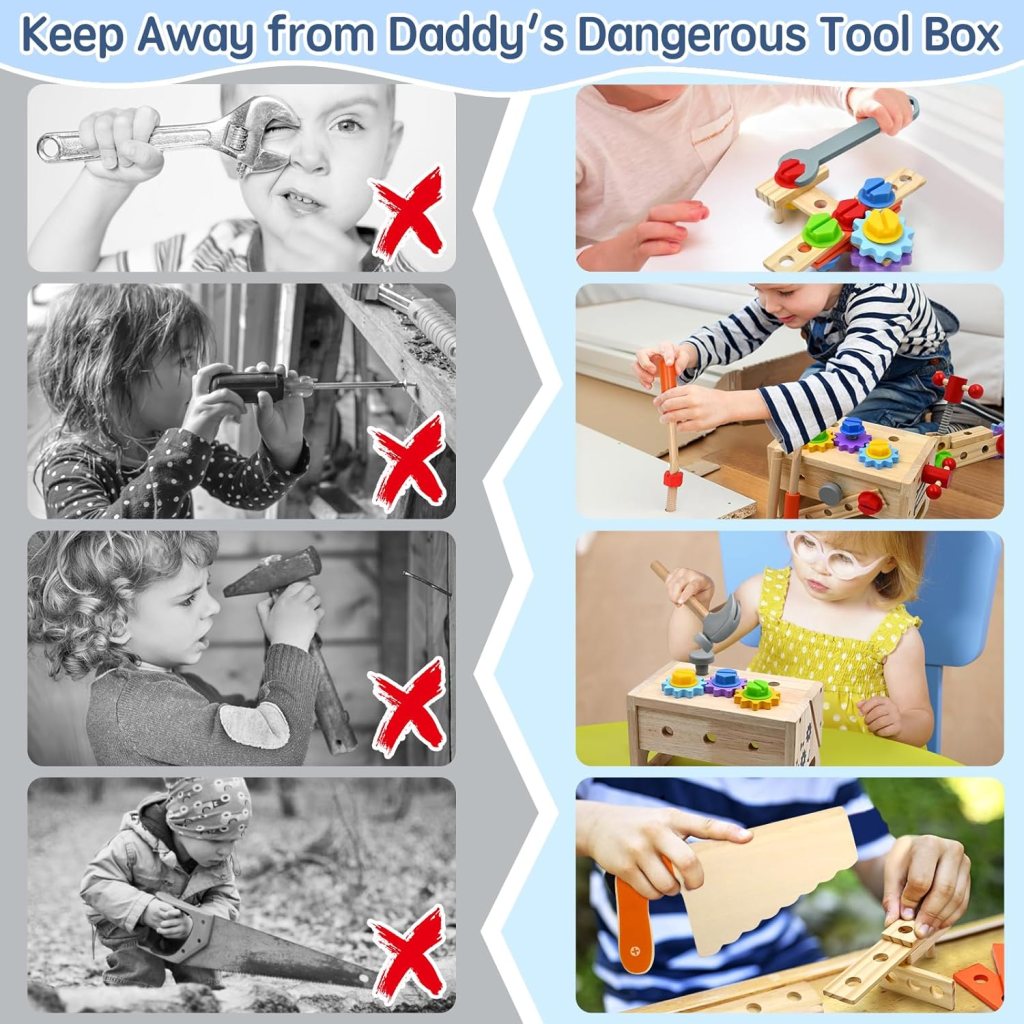 - Geeignet für Kinder ab 3 Jahren: Speziell für junge Bastler im Alter von 3 bis 5 Jahren entwickelt, unterstützt die Werkbank frühkindliche Entwicklungsziele auf spielerische Weise.
