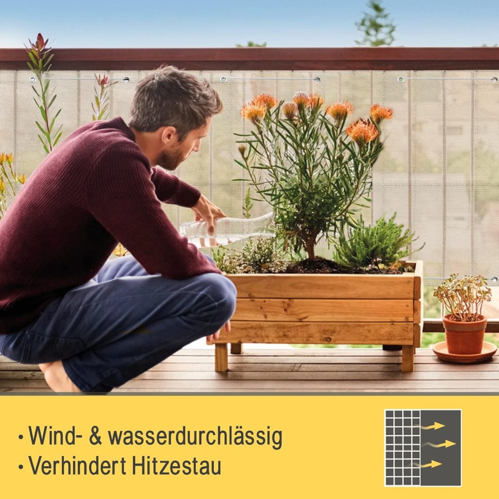Für diejenigen, die sich auch vor neugierigen Blicken schützen möchten, bietet der Sunnylaxx Balkon Sichtschutz eine elegante Lösung. Das anthrazitfarbene Design verleiht deinem Balkon nicht nur einen modernen Look, sondern sorgt auch für effektiven Wind- und UV-Schutz. Dank der einfachen Montage mit Kabelbindern wird dieser Balkonsichtschutz schnell installiert und verwandelt deinen Balkon in einen privaten Rückzugsort, an dem du ungestört entspannen kannst.