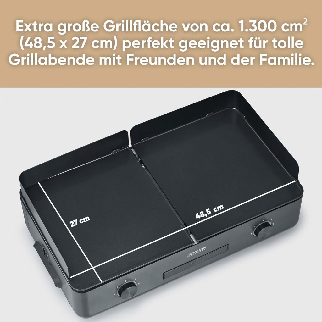 Wer gebündelt Grillpower und individuelle Kontrolle beim Grillen sucht, kommt mit dem SEVERIN Tischgrill Plancha SUAVE voll auf seine Kosten. Anders als viele herkömmliche Elektrogrills bietet der SUAVE zwei getrennte Grillzonen. Diese Innovation ermöglicht gleichzeitiges Grillen von Fisch, Filet und Gemüse in unterschiedlichen Temperaturbereichen.